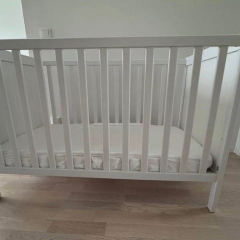 Madrass, två bäddmadrasser och spjälsängskydd (vaderade kanter). Tre uppsättningar dra-på-lakan, påslakan, örngott och bebiskudde kan också medfölja om så önskas. Allt är helt och rent.