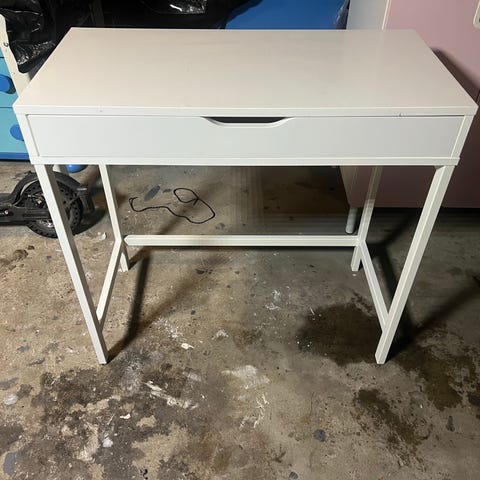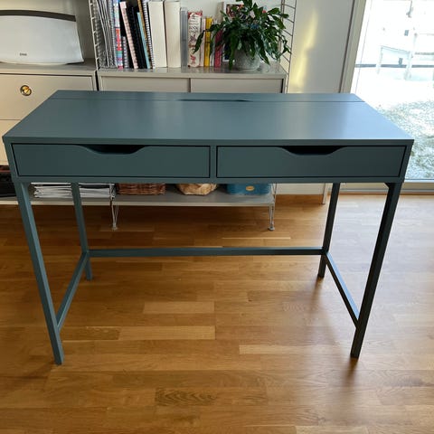 Detta robusta Alex skrivbord från IKEA har tjänat mig väl under flera år. På grund av flytt behöver jag minska storlek på mitt skrivbord.