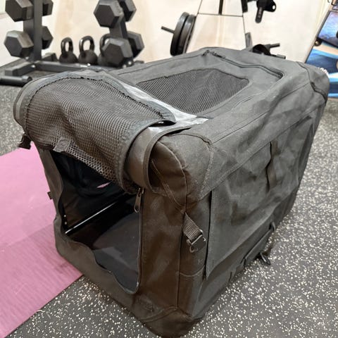 Grå bärbar hundbur i tyg