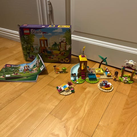 LEGO Friends lekset hund-och katt Adoptionscentrum, med byggbar byggnad i färgglada nyanser inklusive figurer och tillbehör. Vissa små djur kan saknas. Passar för barn och samlare som är intresserade av kreativa byggprojekt.