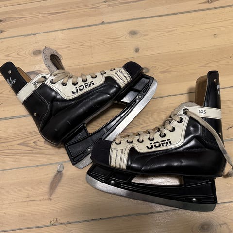 Gamla skridskorna fint skick, men använda. Behöver nog slipas.
