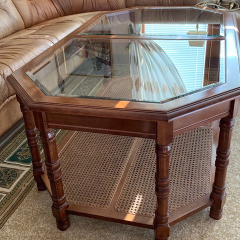 Fint 50 tals bord med flätat rotting till tidnings hylla, bordet är i bra skick