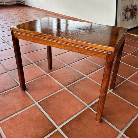 Bord 50 tal med tidningshylla av flätad rotting
