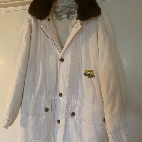 Quiltad jacka med dold dragkedja och tryckknappar framtill, framfickor som knäpps med tryckknapp, raglanärm, 38 (liten 38), 100% polyester. Obs hängaren är borta. Längd mitt bak ca 78 cm, bredd över ryggen ca 52 cm.
