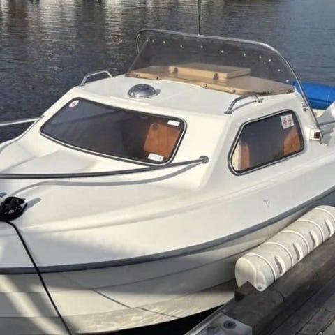 Står redo på släp att flyttas snarast. Släpet är gift med båthelvetet och medföljer i priset.
