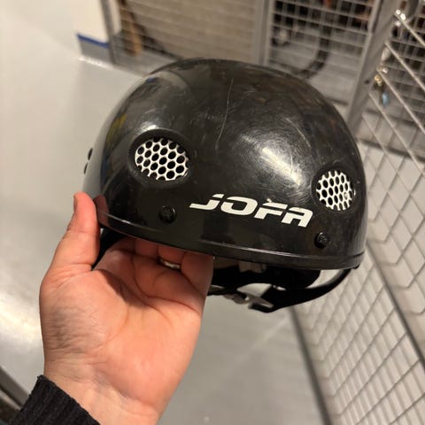 3st Jofahjälmar, för utelek. Alla har gröna spännen som löser ut om barnet fastnar i klätterställning eller liknande. 150kr st