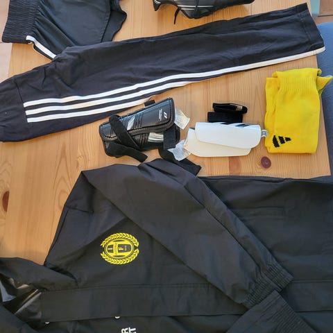 Adidas Real Madrid fotbollset för barn i storlek 152. Setet består av en svart tröja och matchande svarta shorts.