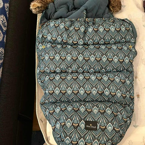 Super fin beige åkpåse från Elodie details. Fordringen är 70% dun och 30% fjädrar, extremt fluffig och varm och gosig, perfekt för kallare temperaturer.