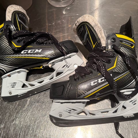 CCM 9355 ishockeyskridskor i storlek 38,5. Skorna är svarta med gula detaljer och har snörning. Passar för ishockey.