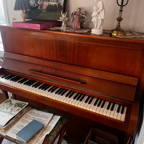 Litet ostämt piano från 1960-talet. Höjd 900mm, bredd 1350mm och djup 500mm. Allt funkar, härlig klang.