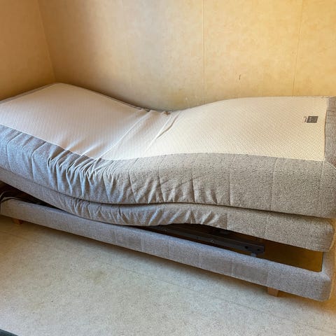 Höj och sänkbar säng med madrass från Dreamzone. Inklusive bäddmadrass och madrasskydd. Fint skick, alla funktioner fungerar utan problem.