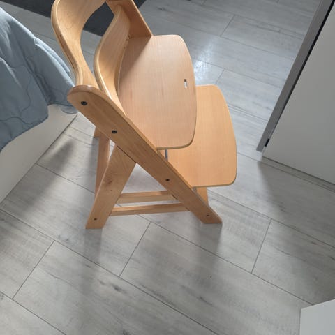 Matstolen är svart, den har ett litet bord som lätt kan monteras eller demonteras efter behov. Det finns säkerhetssele som kan användas ifall barnet vill resa sig.