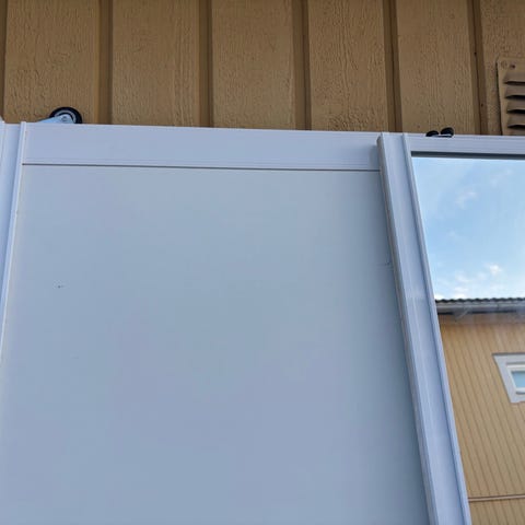 Dörrarna säljes som de är men det går även att få med aluminium-räls som dörrarna rullar på.