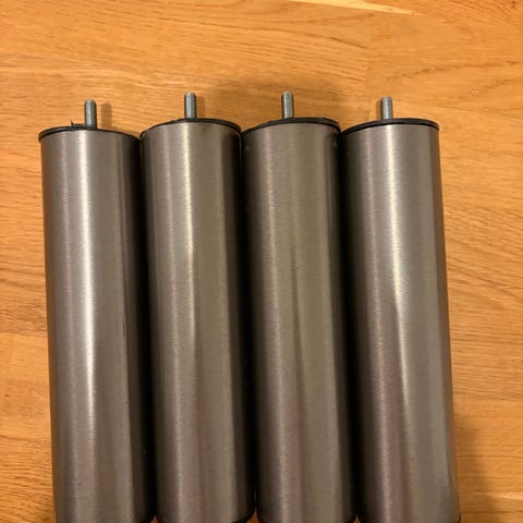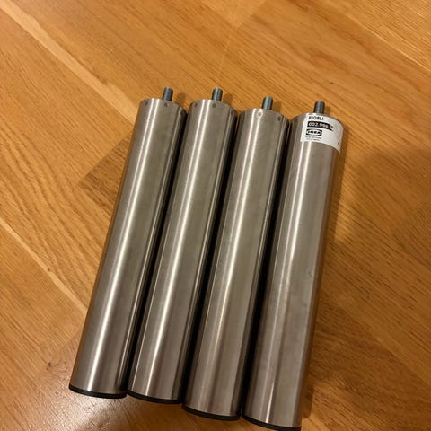 Fyra stycken kromade sängben.