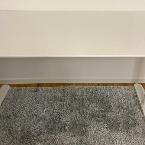 Svart skrivbord Bekant från Ikea säljes. Höjden kan justeras mellan 65-125 cm för att fungeras som ett sitt/stå skrivbord. Lätt slitage på bordsytan enligt bilderna. Ett nät medföljer för att hålla kablar på plats.
