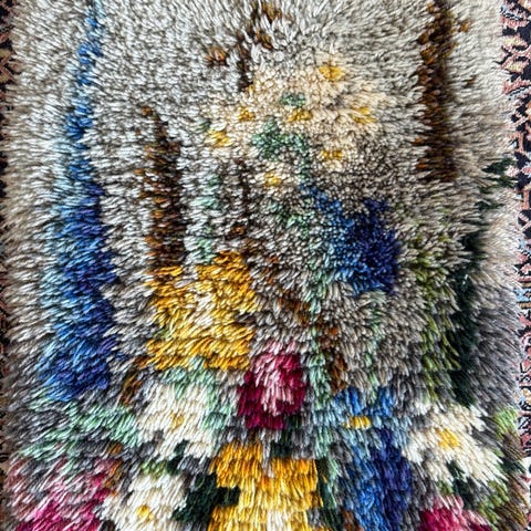 En fin vintagematta i bra skick men något blekt i ena delen av mattan se bild. Tycker man om den stilen så är det inget som störs.
