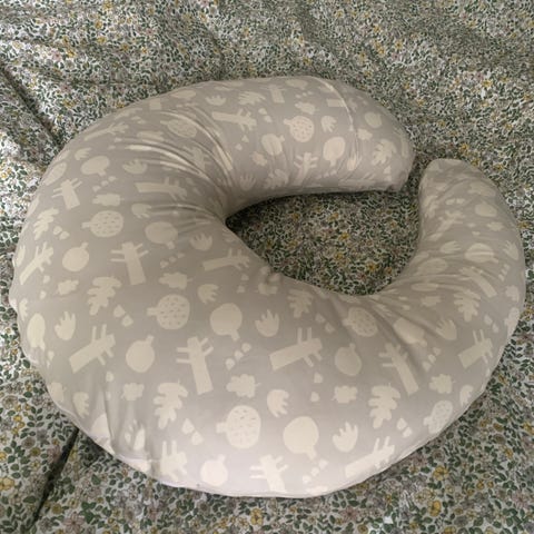 Amningskudde, 190cm lång, med tvättbar överdrag. Bra skick & inga skador. Kan användas för amningen och under graviditeten.