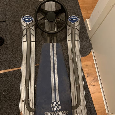 Fungerande broms och kälken är i bra skick. Saknar dragsnöret