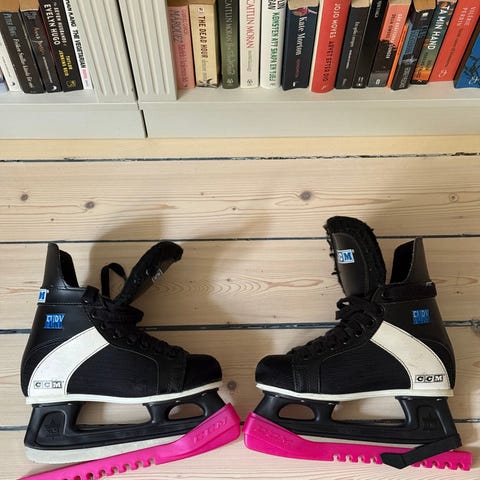 StällbaraGraf barnskridskor i storlek 31 till 34 med blå och vit färg. Enligt egen mätning 20,5 cm till 23 cm. Varma skridskor utrustade med Thinsulate-foder.