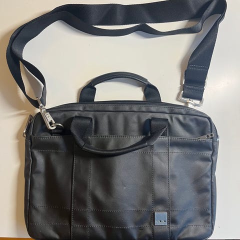Portfölj med både axelrem och ryggsäcksremmar (som kan döljas om de inte behövs). Ca. 15 liter och plats för en 15" laptop. Mycket robusta material (Cordura och läder).