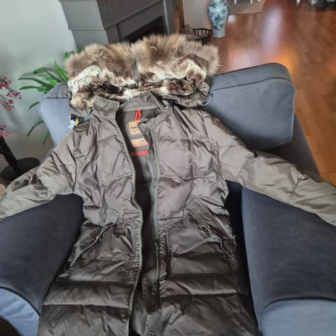 Säljer min äkta Parajumpers Kodiak från Masterpiece Series. En ikonisk och extremt varm vinterjacka med lyxig äkta pälsdetalj på huvan. Jackan är i mycket fint skick och alla detaljer finns kvar – gul rem, patch, innerlabels och dragkedjor fungerar perfekt. LABEL från NK kommer med