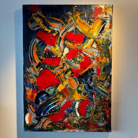 En uttrycksfull abstrakt tavla med mycket dynamik som ger karaktär till ditt hem.