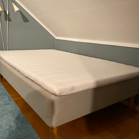 IKEA SNARUM resårbotten (120 cm) + IKEA TUDDAL bäddmadrass.