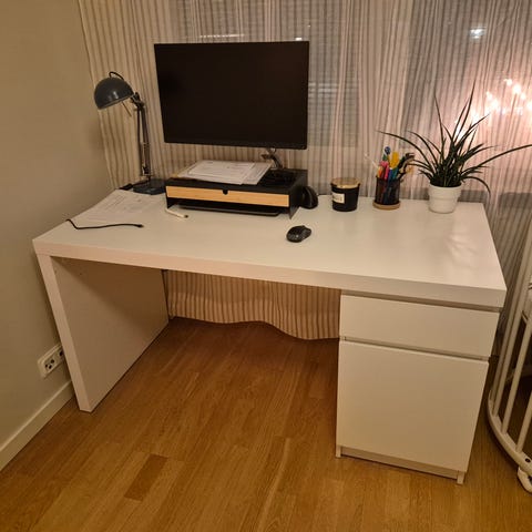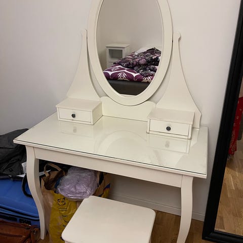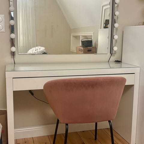 Säljer 2st fina Malm skrivbord i vitt med glasskiva/topp, som stått i flickrum. Perfekt som sminkbord.