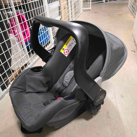 Britax Römer babyskydd och oanvänd isofix-bas med tillbehör och manualer.