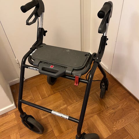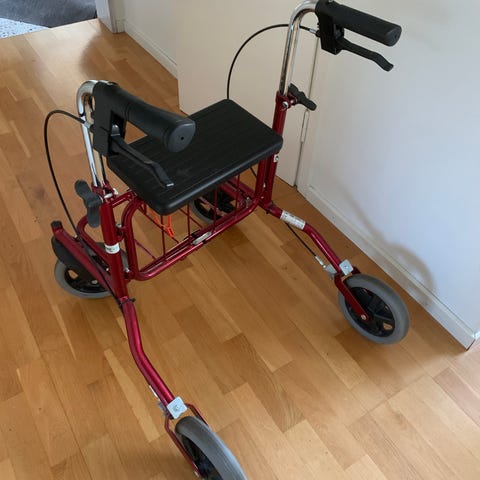 Rullator inköpt år 2021 för 4 400 kr inklusive väska av märket Trust lets fly. Vänster bakhjul är trögt och behöver fixas. Hämtats på plats i Fullersta Huddinge.