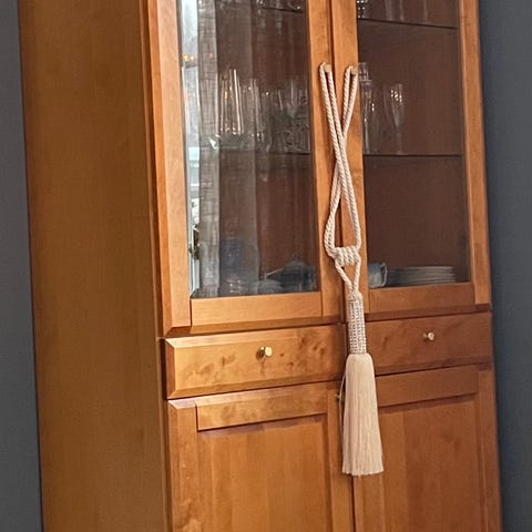 Vitrinskåp i ek det är ett tungt skåp så det är kvalitet