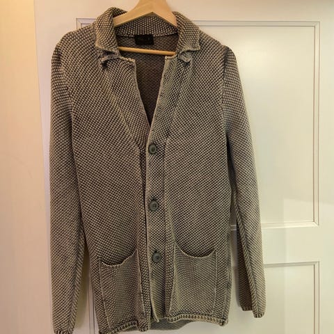 SAND Copenhagen Merinoull tröja i storlek S och färg grå. Tillverkad av 100% extra fin merinoull. Plagget har en V-ringning och är avsett för herrar.