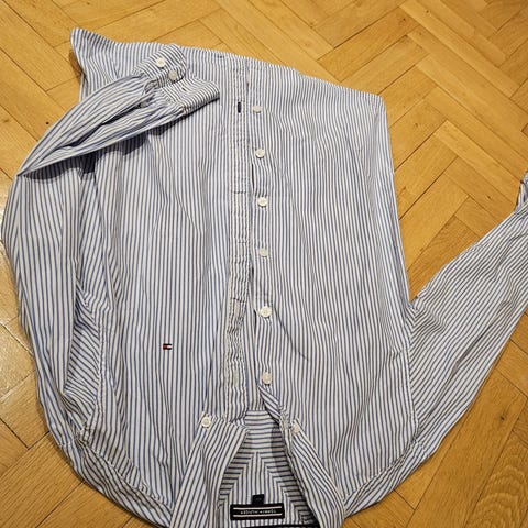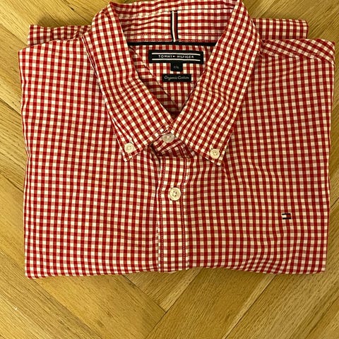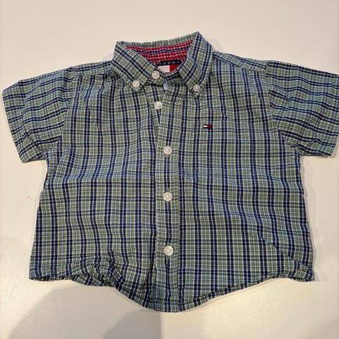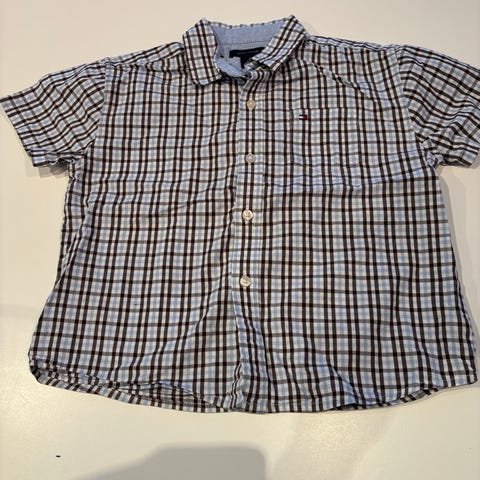 Tommy Hilfiger skjorta i vit färg, storlek 152 för pojkar. Tillverkad i bomullsmaterial. Skjortan har korta ärmar och knäppning fram.