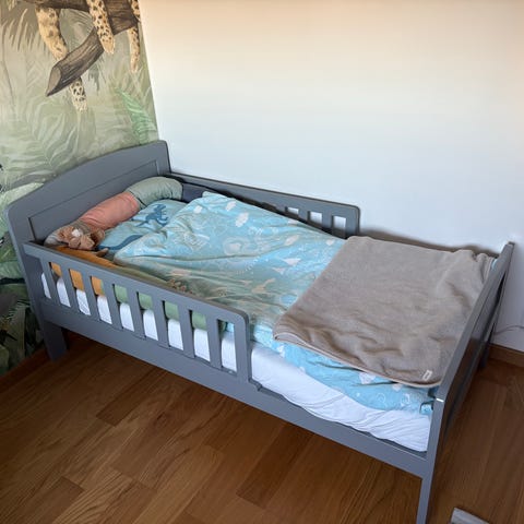 Sidoskydd för att förhindra att ditt barn trillar ur sängen, utdragslåda med bra förvaring.
