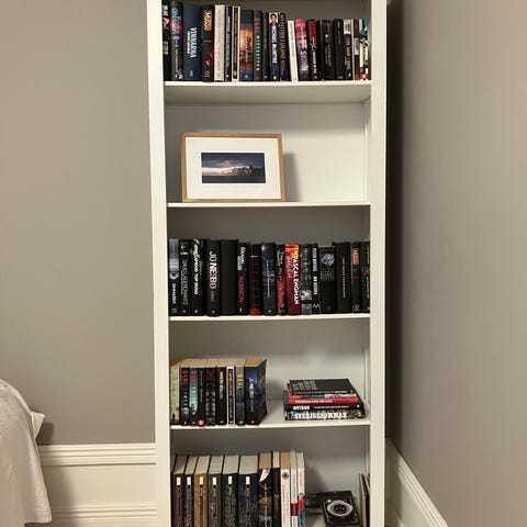 En fin hylla med förvaringslådor(IKEA GRUNDLIG), hyllan går att ta isär i 2 delar: