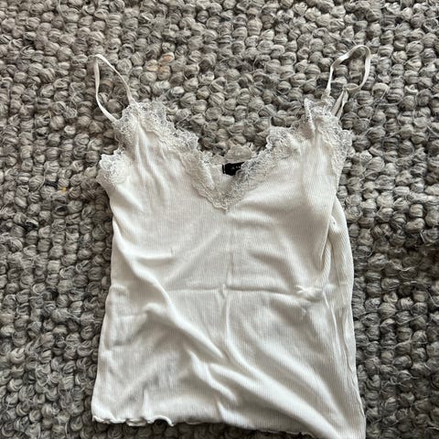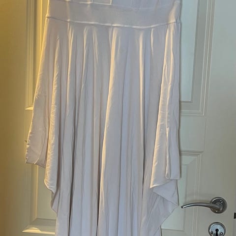 Vit byxdress med volanger i storlek S/36. Den är I fint skick och anväd få gånger. Brösten får inte plats.