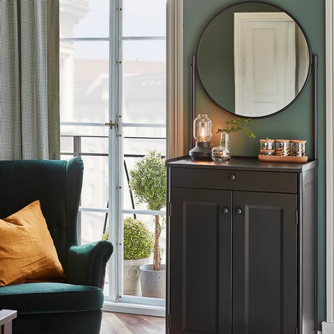 Limited collection, från serien OPPLAND av IKEA. Byrå med 3 lådor och en dörr i brunlaserad askfaner. Designad av Ehlén Johansson.