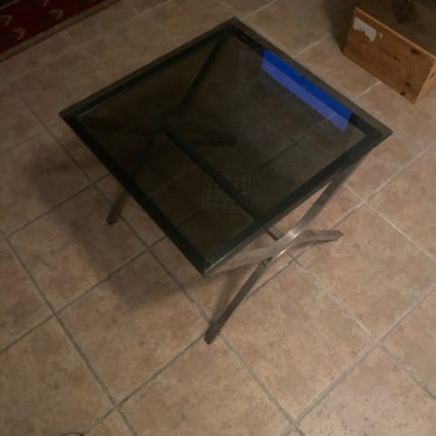 Ett elegant glasbord med en stilren metallram. Perfekt som soffbord eller sidobord. Dess minimalistiska design gör att det passar in i de flesta inredningsstilar.