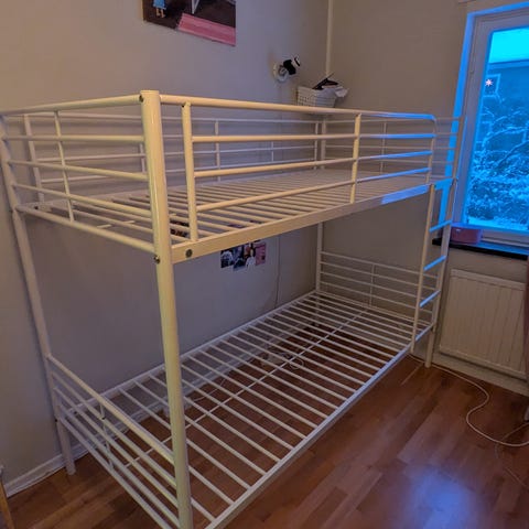 Våningssäng i metall, mycket bra skick, jättebra för barn