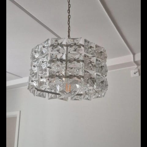 Säljer denna oanvända taklampa. Bredd 38 cm. Bruksslitage. Ej funktionstestad. Ingen funktionsgaranti lämnas. Inhandlades på auktion men säljes då den ej passar till det tänkbara rummet.