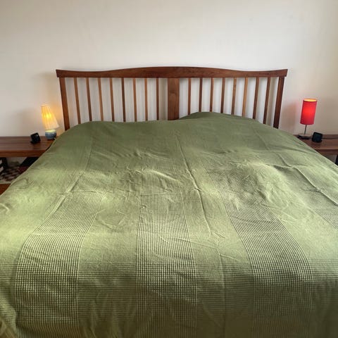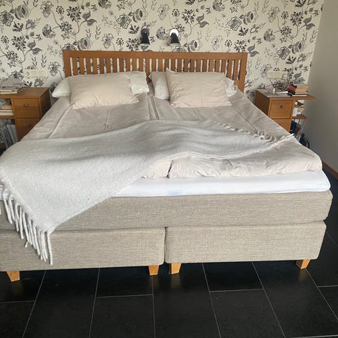 Sänggavel i grå sammet + 2 st nattduksbord