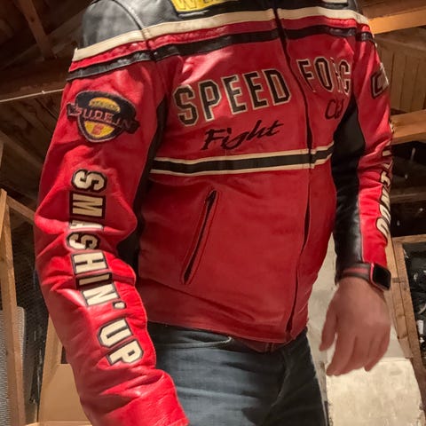 Mc-jacka med fickor för skydd i armbågarna och axlarna samt på ryggen det följer med tunna extra skydd för armbågarna och axlarna
