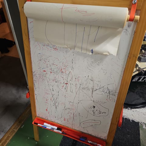 Ikea MÅLA Ritstativ, barrträ. En griffeltavla och en halv ritrulle