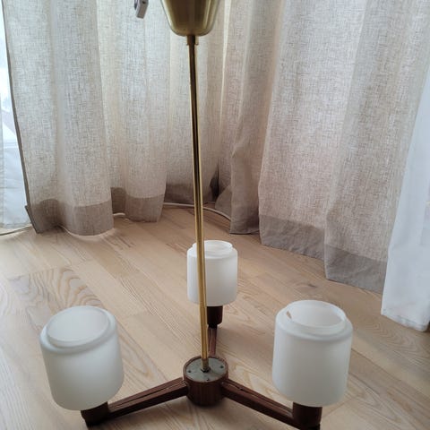 Taklampa I teak och mässing