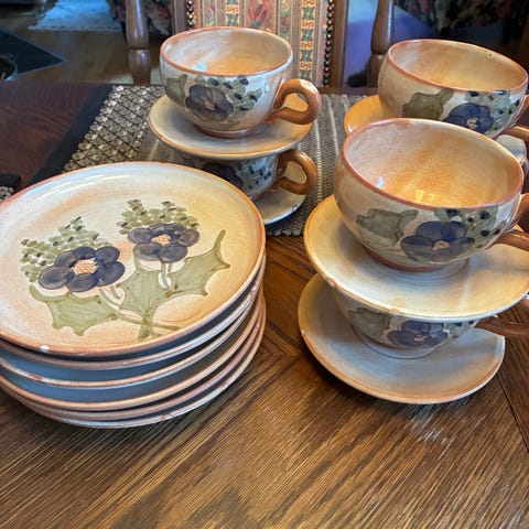 Vacker servis med rockokomönster, skickas mot fraktkostnad.