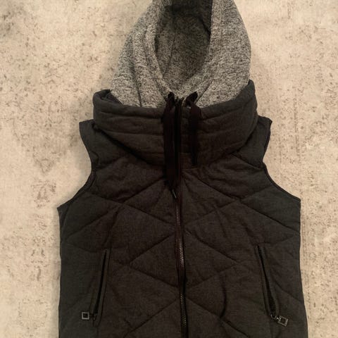 Toppen skön väst med kraftig dragkedja och fickor fram mudd nertill. Längd:63 cm byst;106cm.