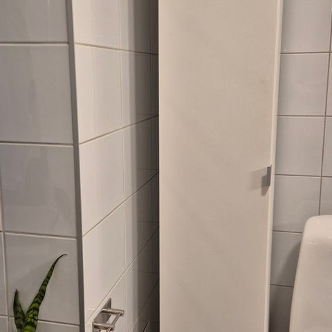 Badrumsskåp från Scanbad Delta serien Insåg att det var fel mått på skåpet efter att ha öppnat upp förpackningen. Produkten har ej gått att returnera, oanvänd. Köpte nytt med nya mått. Vänsterhängd, omonterad. Kan användas som underskåp, sidoskåp samt överskåp.