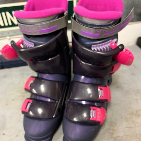 Använda, men har många säsonger kvar. Har ärvt dem och åkt en vecka, men de var lite för stora i foten och lite för smala i benet. Också tämligen styva, skulle säga att de sitter bättre på en duktig kille/man.