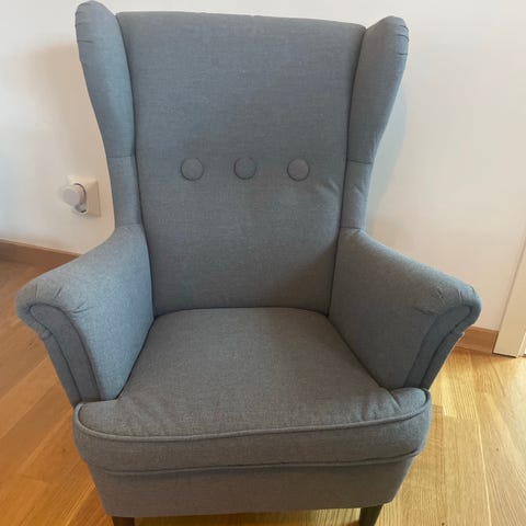 Barnfåtölj Strandmon från Ikea, sitsen är smutsig och skulle behöva rengöras. I övrigt gott skick.