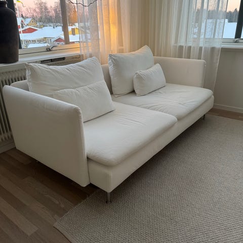 Söderhamn, 1-sitssektion i gunnared begie. Köpt ny pris 3395kr. Ca 2 år gammal. Säljer på grund av flytt. Fint skick lite skadad klädsel (vgs bild 3-4) då katten har varit på den lite, perfekt för dig som har katt! Utöver mycket bra skick! Kan hämtas tidigast 17/1 januari. Söderhamns 1-sitssektion säljs för utan sittpuffen på sista bilden för 1100kr